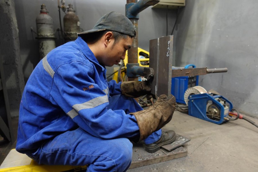 近日,记者见到马海龙时,他正手持焊枪,在组装调试车间里紧张忙碌地工作。“今年以来,我们单位的钻机订单量已经破百台,我和工友们每天加班加点工作,只为了能如期保质保量交付。”马海龙对记者说。 放弃与坚持的抉择 马海龙曾经是一名武警,两年的军旅生活,强健了他的体魄,也磨炼了他的意志。然而,每个人的成长与成功都不是一帆风顺的,刚进入宝石机械时,面对焊接这个陌生的领域,马海龙显得无所适从,甚至内心有些抵触。 “第一次进行焊接练习时,尽管师傅叮嘱过安全事项,但还是不小心晃到了眼睛,眼泪止不住地往下流,半夜里从睡梦中疼醒,真想挖掉自己的眼睛。”马海龙说,当时他很想放弃焊工这个选择,是父亲的一番开导让他坚持了下来。