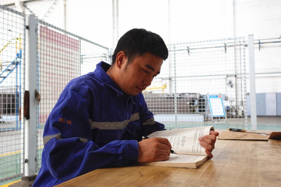 仰焊是焊接操作中难度最大的一种,因为熔化的金属在重力作用下容易下坠,使焊缝成形困难,操作不当会引起钢水流淌,所以必须严格控制焊接参数。 功夫不负有心人,不久后的一次赛前练习中,马海龙焊接的试件得到了前辈们的一致好评,并让其他同年入职的同事进行参观,这给了他莫大的鼓舞。往后的日子里,他加倍努力,并以一名优秀工匠的标准严格要求自己。在日复一日的历练中,马海龙逐渐成长为单位的骨干力量,出色地完成了一次又一次焊接任务。