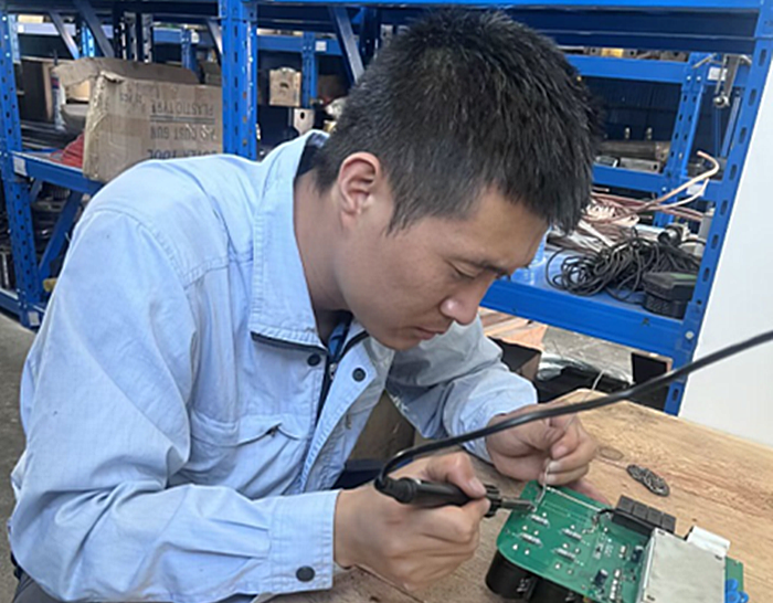 王波从小就对电子产品十分着迷,家里的小家电被他“研究”了个遍。经过大学期间的系统学习,他掌握了丰富的理论知识。“中铁宝桥道岔分公司电气设备种类多,线路复杂,其实刚进入公司时,面对电气柜里盘根错节的线路,我也感觉无从下手。”王波说,为了尽快适应环境,他把每一位同事都当作老师,遇到不能解决的问题或者疑问时,便虚心向大家请教。